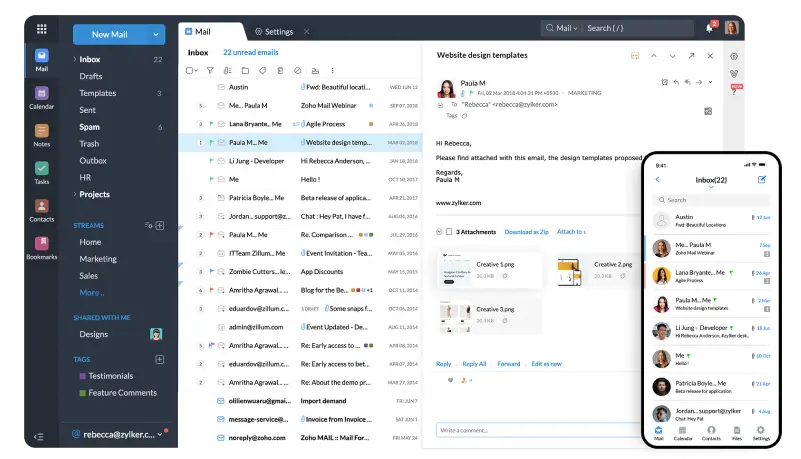 Stay connected even when on the move with Zoho Mail’s dedicated apps. Manage emails, handle administrative tasks, or collaborate without missing a beat.